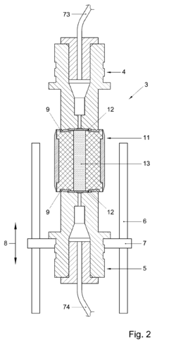 - A cartridge design featuring a core of a stiffer polymeric material surrounding the passage, with sealing rings of a more flexible polymeric material, and enhanced clamping forces to maintain a hermetic seal, allowing resistance to pressures up to 100 MPa and temperatures up to 100°C without leakage.