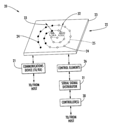 - A phased array antenna architecture featuring a substrate with antenna elements arranged along an imaginary spiral, with serial communication of updated control data through a hierarchical control system, including subarray controllers and a master controller connected via USB and Ethernet, allowing gradual beam steering and reconfiguration.