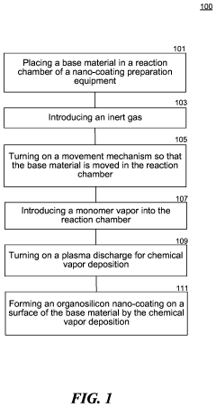 - A method involving the use of organosilicon monomers with silicon-oxygen bonds, where the substrate is moved during plasma discharge to control energy and monomer distribution, forming a dense cross-linked structure without solvents, enhancing the coating's thickness control and environmental friendliness.