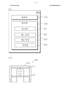 Technical Solution: Bosch has pioneered advanced sensor systems utilizing tailored neodymium magnets with their proprietary "SensorX" technology. Their approach focuses on precision-engineered neodymium magnets with controlled homogeneity and customized magnetic field distributions specifically designed for automotive and industrial sensor applications. Bosch employs a multi-stage magnetization process that creates complex magnetic field patterns within a single magnet, enabling more sophisticated sensor responses and higher accuracy. Their manufacturing process includes precision machining of magnets to tolerances below 10μm and specialized coating technologies that prevent oxidation while maintaining precise magnetic field characteristics. Bosch has also developed compensation algorithms that work in conjunction with their tailored magnets to account for temperature variations, achieving sensor accuracy improvements of up to 300% compared to conventional systems. Their integrated approach combines magnet design, sensor electronics, and software calibration to create complete sensing solutions.