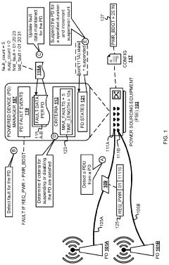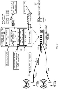 Technical Solution: Huawei has developed a comprehensive PoE++ (IEEE 802.3bt) testing infrastructure that combines hardware verification and software monitoring solutions. Their approach includes the PowerDiagnostics platform which performs real-time power monitoring across PoE++ deployments, detecting anomalies in power consumption patterns. The system implements multi-level testing including physical cable certification, power negotiation verification, and load testing under maximum power conditions (up to 90W per port). Huawei's solution incorporates thermal imaging analysis to identify potential hotspots in PoE++ infrastructure before failures occur. Their testing methodology also includes automated power cycling tests to verify system stability during power fluctuations and recovery scenarios, simulating real-world power disruptions that might affect connected devices.