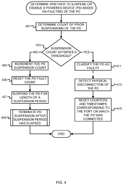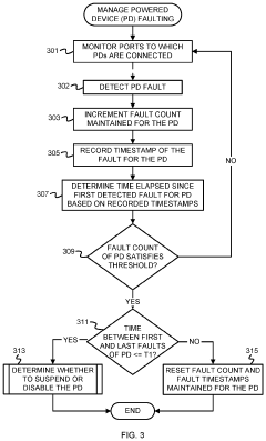 - Implementing a PD manager that temporarily suspends or disables powered devices experiencing faults by tracking fault events and exceeding predefined thresholds, thereby managing resource allocation and preventing hardware damage.