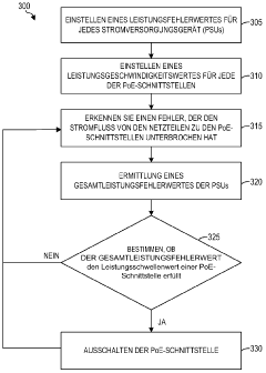 Technical Solution: ZTE has developed a multi-dimensional PoE++ testing framework called PowerGuard that focuses on both preventive and reactive testing methodologies. Their solution incorporates specialized hardware probes that can be inserted at various points in the PoE++ infrastructure to measure actual power delivery versus expected values. ZTE's approach includes automated power quality analysis that examines voltage stability, current fluctuations, and power negotiation protocols across all connected devices. Their system implements continuous monitoring with machine learning algorithms that establish baseline performance metrics and can detect subtle deviations that might indicate developing problems before complete failure occurs. ZTE's testing infrastructure also includes environmental factor analysis, correlating temperature and humidity data with power performance to identify potential environmental contributors to PoE++ failures.