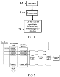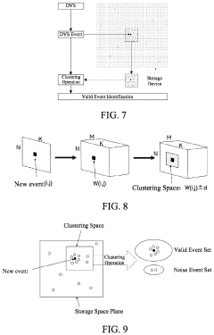 Neuromorphic chips implement spiking neural networks to process event-based vision data. These networks use sparse, temporal coding to efficiently represent and process visual information. This approach allows for low-latency, energy-efficient processing of dynamic visual scenes, making it ideal for applications requiring real-time decision-making.Expand Specific Solutions03 Hardware acceleration for event-based vision algorithms