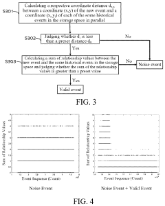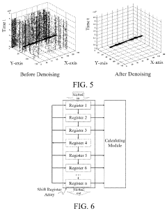 - A denoising device that calculates coordinate distances between new and historical events, judges validity based on relationship values, and filters out noise events using a combination of storage and processing modules, including a shift register array and band-pass filtering, to differentiate between valid and noise events.