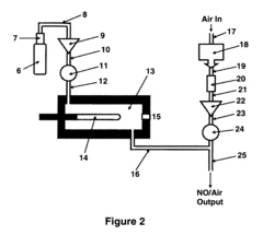 - Producing NO by exposing nitrous oxide (N2O) to ultraviolet light in a controlled environment, allowing for accurate concentration control and eliminating the need for high temperatures or hazardous materials, with byproducts of nitrogen and oxygen, which are non-toxic and easily managed.