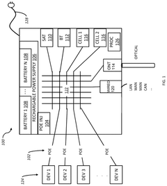 Due to the higher power levels in PoE++ systems, advanced thermal management techniques are implemented to ensure reliable operation. These include improved heat dissipation designs in both power sourcing equipment and powered devices, temperature monitoring systems, and automatic power adjustment based on thermal conditions. Energy efficiency is enhanced through intelligent power scheduling, sleep modes for connected devices, and reduced power consumption during periods of low activity, contributing to overall reduced operational costs and environmental impact.Expand Specific Solutions05 Application-specific implementations and use cases