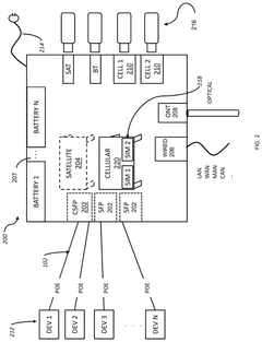 Technical Solution: Cisco has developed an advanced Power over Ethernet (PoE++) solution specifically designed for renewable energy systems integration. Their technology leverages the IEEE 802.3bt standard to deliver up to 90W per port, enabling direct powering of renewable energy monitoring systems, smart grid components, and energy management devices. Cisco's Universal Power Over Ethernet (UPOE+) architecture incorporates intelligent power management algorithms that dynamically allocate power based on renewable energy availability, optimizing energy consumption during peak and off-peak periods. Their system includes specialized power negotiation protocols that enable seamless integration with solar inverters and wind turbine controllers, allowing for real-time monitoring and adjustment of renewable energy production. Cisco has also implemented advanced power backup capabilities that can prioritize critical infrastructure during grid outages by intelligently routing power from renewable sources to essential systems[1][3].