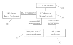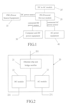Technical Solution: Huawei has pioneered an innovative PoE++ framework specifically engineered for renewable energy applications called the Digital Power Network Solution. This system utilizes their proprietary intelligent power management controllers that can deliver up to 95W of power while maintaining 98% transmission efficiency across network infrastructure. Huawei's solution incorporates AI-driven load balancing algorithms that continuously monitor renewable energy inputs from solar panels or wind turbines and automatically adjust power distribution across connected devices. Their technology features bidirectional power flow capabilities, allowing excess renewable energy to be redistributed across the network or stored in integrated battery systems for later use. Huawei has implemented specialized surge protection mechanisms designed specifically for the variable power outputs common in renewable energy systems, protecting sensitive equipment from potential damage. The system includes comprehensive energy harvesting modules that can aggregate power from multiple renewable sources simultaneously, creating a unified power grid across distributed network infrastructure[2][5].