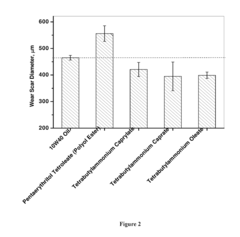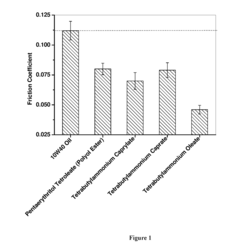 - Development of halogen-, phosphorus-, and sulfur-free ionic liquids with fatty acid anions, combined with various cations, as lubricants or additives, which form low-shear strength films on contact surfaces to reduce friction and wear, while minimizing environmental and surface hazards.