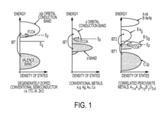 Transparent conductive oxides exhibit unique combinations of electrical conductivity and optical transparency. Key electrical properties include carrier concentration, mobility, and resistivity, while optical properties encompass transmittance, reflectance, and absorption across different wavelength ranges. The trade-off between conductivity and transparency is a fundamental challenge in TCO development, as increasing carrier concentration typically enhances conductivity but reduces transparency due to increased free carrier absorption. Band gap engineering and defect management are essential strategies for optimizing this balance.Expand Specific Solutions04 TCO applications in electronic and optoelectronic devices