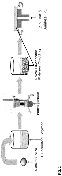 - Incorporating nanoscale ceramic particles, such as lithium fluoride (LiF) or magnesium fluoride (MgF2), into fluorinated polymers to enhance thermal conductivity while maintaining low refractive index and absorption, thereby creating a polymer composite suitable for use as a cladding in fiber lasers operating at eye-safer wavelengths.