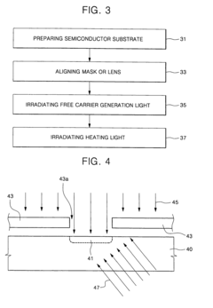 - Increasing the free carrier concentration in semiconductor substrates to enhance the absorption coefficient, allowing the use of infrared lasers with longer wavelengths like CO2 lasers for localized heating, which is achieved by selectively focusing free carrier generation light on specific regions to raise the temperature and then applying a heating light.