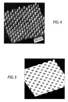 - A method utilizing a vacuum effect with ammonia gas to fill micropores in a mold, followed by solvent exchange with water and other solvents, to effectively insert a viscous fluid into nanometer-level pores, ensuring precise replication of patterns regardless of surface affinity, and using aluminum anodic oxidation technology to create controlled nanometer-level microstructures.