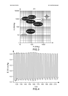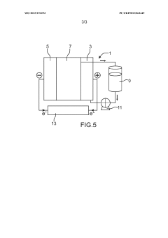 Technical Solution:  The Commissariat à l'énergie atomique et aux énergies alternatives (CEA) has pioneered research on water-ionic liquid interfaces for energy storage applications. Their approach focuses on molecular-level understanding of water-ionic liquid interactions using advanced spectroscopic techniques and molecular dynamics simulations. CEA has developed novel ionic liquid electrolytes with controlled water content for supercapacitors and batteries, demonstrating that precise water concentrations (typically 500-2000 ppm) can enhance ionic conductivity by up to 40% while maintaining electrochemical stability windows above 3V. Their research has revealed that water molecules can form specific solvation structures around ions, creating "water bridges" that facilitate ion transport while minimizing detrimental electrochemical reactions. CEA's patented ionic liquid formulations incorporate specific functional groups that can trap water molecules in beneficial configurations, preventing water clustering that would otherwise lead to performance degradation. This approach has enabled the development of humidity-resistant energy storage devices with extended cycle life (>10,000 cycles) even under variable environmental conditions.