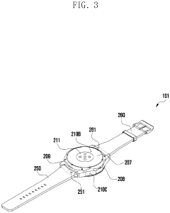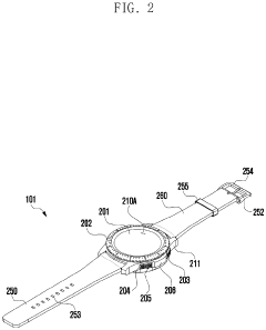 Technical Solution: Samsung has implemented a dual-track regulatory strategy for their wearable biosensors, distinguishing between consumer wellness devices and medical-grade products. Their Samsung Health platform serves as the foundation for their consumer health wearables, while their Samsung Health Monitor application undergoes more rigorous medical device regulatory scrutiny. For medical-grade features, Samsung has successfully navigated FDA clearance and CE marking processes for specific functionalities like ECG and blood pressure monitoring on their Galaxy Watch series[2]. Their approach includes a modular software architecture that allows for separate regulatory submissions for different health monitoring features, enabling faster market entry for non-regulated functions while pursuing clearance for medical applications. Samsung's regulatory compliance strategy leverages their experience in both consumer electronics and healthcare sectors, implementing design controls that satisfy IEC 62304 for software lifecycle processes and ISO 14971 for risk management[4]. They've established dedicated regulatory affairs teams that collaborate with regional authorities to address market-specific requirements, particularly focusing on data privacy frameworks that comply with both GDPR and HIPAA standards.