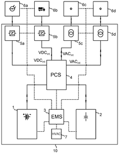 - A hybrid energy storage system (HESS) combining sodium-ion battery modules for high energy density and supercapacitor modules for high power density, managed by an energy management system to stabilize grids and provide versatile power supply, with safety features like short-circuiting to render modules inert.