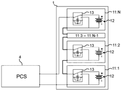 Technical Solution: State Grid Corporation of China has developed a comprehensive hybrid lithium-sulfur battery system specifically designed for large-scale grid energy storage. Their technology integrates conventional lithium-ion components with high-capacity sulfur cathodes in a unique dual-electrolyte configuration. The system employs a proprietary "polysulfide trapping" mechanism using functionalized carbon materials that significantly reduces capacity fade by preventing polysulfide dissolution[2]. For grid-scale deployment, State Grid has engineered 1MWh containerized units with integrated thermal management and fire suppression systems, achieving energy densities of 200-250 Wh/kg at the system level. Their battery management system incorporates predictive analytics to optimize charging protocols based on grid demand patterns and weather forecasts, enabling more efficient integration with renewable energy sources. State Grid has demonstrated the technology in multiple pilot projects across China, including a 10MWh installation in Jiangsu Province that has maintained 85% capacity retention after 2000 cycles[5]. The system achieves round-trip efficiencies of 80-85% and response times under 100ms, making it suitable for both energy time-shifting and frequency regulation applications.