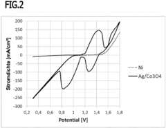 - A zinc-air battery with a cathode designed as a gas diffusion electrode containing a mixture of silver and/or silver oxide, along with catalysts like cobalt oxide, manganese oxides, and ruthenium oxide, which enhances catalytic activity and conductivity, eliminating the need for carbon and improving corrosion resistance.