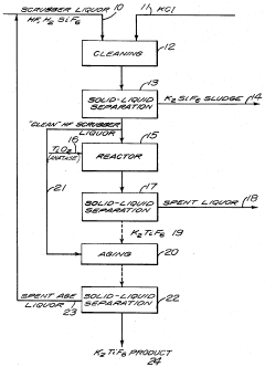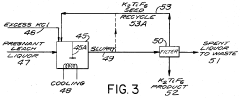 Technical Solution: Do-Fluoride has developed a proprietary electrolytic fluorination process that significantly enhances hydrofluoric acid efficiency in metal alloy production. Their technology employs a modified electrochemical cell design with specialized fluoropolymer-coated electrodes that reduce HF consumption by up to 30% compared to conventional methods. The company has implemented a closed-loop recovery system that captures and recycles volatile fluoride compounds during the metal treatment process, achieving recovery rates of over 85% of unused HF. Their process operates at lower temperatures (60-80°C versus traditional 100-120°C), which not only reduces energy consumption but also minimizes HF evaporation losses. Additionally, they've developed proprietary catalysts that accelerate fluorination reactions while requiring lower HF concentrations, typically using 15-20% less acid while maintaining equivalent metal surface properties.