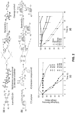 Technical Solution: BASF has developed a comprehensive platform for hydrogel degradation control and antimicrobial functionality through their EcoGel™ technology. This system utilizes biodegradable polymers derived from renewable resources combined with precisely engineered cross-linking agents to create hydrogels with predictable degradation profiles. Their approach incorporates environmentally responsive triggers (pH, temperature, enzymatic) that can accelerate or decelerate degradation based on application requirements. BASF's antimicrobial hydrogels feature proprietary encapsulation technology that releases active ingredients at controlled rates, maintaining effective antimicrobial concentrations throughout the material's lifetime. Their analytical framework combines real-time monitoring techniques with advanced computational models to predict antimicrobial efficacy over time under various environmental conditions, enabling precise lifetime predictions for different applications ranging from agricultural products to consumer goods packaging.