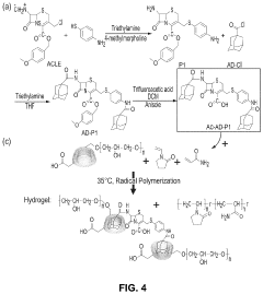 Environmental conditions significantly impact hydrogel degradation behavior and antimicrobial performance. Factors such as temperature, pH, ionic strength, and presence of enzymes can accelerate or decelerate degradation rates. Additionally, these factors influence the release and activity of antimicrobial agents. Understanding these environmental influences is crucial for predicting the lifetime of antimicrobial hydrogels in specific applications and ensuring consistent performance across varying conditions.Expand Specific Solutions04 Novel polymer compositions for extended antimicrobial activity