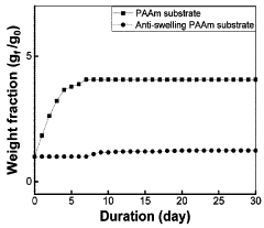 Various fabrication techniques are employed to create hydrogel sensors with specific architectures and functionalities. These methods include 3D printing, photolithography, microfluidic approaches, and electrospinning. Advanced manufacturing processes allow for precise control over the sensor geometry, porosity, and incorporation of functional components. These fabrication methods enable the development of miniaturized sensors, sensor arrays, and integrated sensing platforms with enhanced performance characteristics such as sensitivity, response time, and durability.Expand Specific Solutions05 Hydrogel sensors for environmental and industrial monitoring