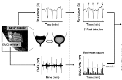 - A real-time bladder sensing system using a bio-implantable sensor element with a hydrogel substrate and anti-swelling coating, integrating EMG and strain sensors to predict urination timing and detect overactive bladder, while minimizing mechanical impact and maintaining high adhesive strength to bladder tissue.
