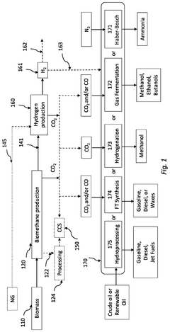 Technical Solution: Haldor Topsøe has developed advanced catalytic solutions specifically for hydrogenolysis processes using both green hydrogen and SMR-CCS (Steam Methane Reforming with Carbon Capture and Storage) pathways. Their TITAN series catalysts are designed to optimize hydrogen utilization efficiency in hydrogenolysis reactions, achieving up to 95% selectivity for target products while minimizing hydrogen consumption. For green hydrogen integration, they've engineered their HydroFlex™ technology that seamlessly connects electrolysis units with hydrogenolysis reactors, enabling direct utilization of fluctuating renewable electricity sources. On the SMR-CCS front, Topsøe's SynCOR Methane™ technology captures over 95% of CO2 emissions from hydrogen production while maintaining high energy efficiency. Their integrated approach includes proprietary heat recovery systems that reduce the overall energy penalty of carbon capture by approximately 15% compared to conventional amine-based systems[1][3].