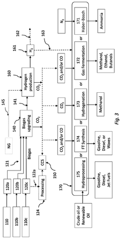 Strengths: Industry-leading catalyst technology with exceptional selectivity and stability; integrated solutions that address both production and utilization sides of hydrogen; proven commercial-scale implementations. Weaknesses: Higher initial capital costs compared to unabated hydrogen pathways; technology optimization still required for smaller-scale applications; dependence on regional carbon storage infrastructure for SMR-CCS implementation.