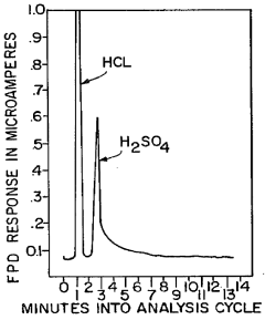 - A method and apparatus that collect sulfuric acid on a cooled chamber while eliminating interfering species with hydrochloric acid, followed by revaporization in humidified air for precise measurement using a flame photometric detector.