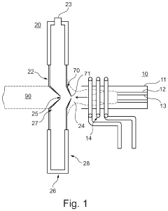 Novel sample preparation and introduction methods have been developed to improve detection capabilities for both ICP-MS and ESI-MS. These innovations include automated sample handling, specialized extraction techniques, and microfluidic devices that enhance sample throughput while minimizing contamination. Advanced sample introduction systems improve ionization efficiency and reduce matrix effects, leading to lower detection limits and more reliable quantification across diverse sample types.Expand Specific Solutions05 Specialized applications and detection of specific compounds