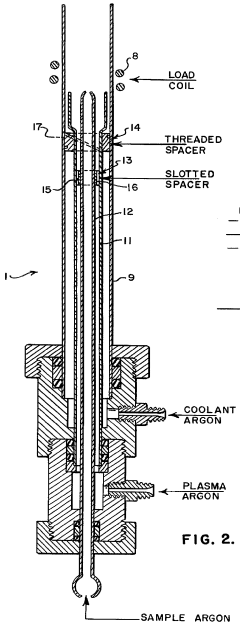 Technical Solution: Thermo Fisher Scientific has developed advanced ICP-OES systems with intelligent nebulizer gas control technology that automatically optimizes gas flow rates based on sample viscosity. Their iCAP 7000 Series ICP-OES incorporates a sophisticated Duo view plasma observation system that minimizes physical interferences through optimized plasma viewing positions. The company's MFC (Mass Flow Controller) technology provides precise control of nebulizer gas flow with accuracy better than ±1%, enabling consistent aerosol generation regardless of sample viscosity variations. Their systems also feature advanced sample introduction components including concentric nebulizers and cyclonic spray chambers specifically designed to improve transport efficiency across varying sample matrices. The proprietary EMT (Enhanced Matrix Tolerance) technology automatically adjusts plasma conditions to maintain optimal excitation conditions when analyzing high-dissolved-solids samples, reducing the impact of physical interferences on analytical results.