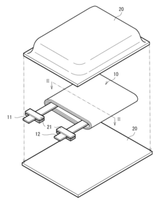Biodegradable polymer composites can be utilized as various battery components including separators, binders, and casings. These materials offer environmental benefits while maintaining necessary mechanical and thermal properties. By incorporating natural fibers or bio-fillers into the polymer matrix, the mechanical strength and thermal stability can be enhanced while reducing the carbon footprint of battery production.Expand Specific Solutions03 Bio-based conductive polymers for electrode materials