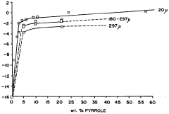 - Forming composites by polymerizing pyrrole onto thermoplastic microbeads with controlled polypyrrole concentration and particle size, incorporating a heat-activatable cross-linking agent to maintain tensile strength and using appropriate doping agents to enhance conductivity.