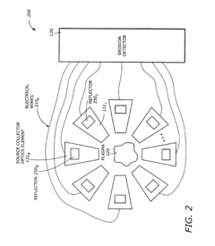 EUV masks require specialized materials and structures to effectively pattern wafers using extreme ultraviolet radiation. These masks typically use multilayer reflective coatings optimized for EUV wavelengths. Defect inspection, repair, and management are critical challenges in EUV mask technology, as even nanoscale imperfections can cause significant pattern errors. Advanced techniques for defect detection, characterization, and mitigation are essential for maintaining mask quality and extending mask lifetime.Expand Specific Solutions03 EUV Source Technology
