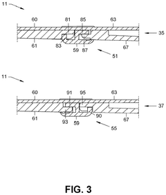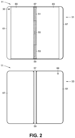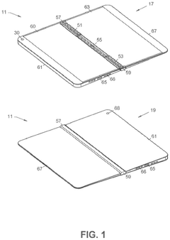Technical Solution: Samsung has pioneered flexible AMOLED technology through their "Flex" display series, which enables foldable and rollable computing devices. Their technical approach involves using polyimide substrates instead of glass to achieve flexibility while maintaining display quality. Samsung's Ultra-Thin Glass (UTG) technology provides a balance between flexibility and durability, with thickness reduced to approximately 30 micrometers. Their flexible displays incorporate Y-OCTA (Youm On-Cell Touch AMOLED) technology that integrates the touch sensor directly into the display panel, reducing thickness by up to 30% compared to conventional designs. Samsung has also developed advanced TFT backplanes using LTPO (Low-Temperature Polycrystalline Oxide) technology that enables variable refresh rates (1-120Hz), significantly reducing power consumption by up to 40% in their flexible displays. Their architecture integrates specialized display drivers and power management systems optimized for folding form factors, allowing seamless transitions between display states.