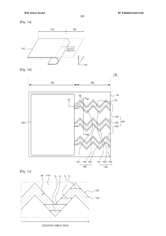 Technical Solution: LG Display has developed proprietary flexible OLED technology branded as "Plastic OLED" (POLED) that uses plastic substrates instead of traditional glass. Their technical approach focuses on rollable display architectures that can extend or retract from a compact base, as demonstrated in their rollable TV and smartphone prototypes. LG's flexible displays utilize a unique RGB subpixel structure that maintains color accuracy even when bent or rolled, with a minimum bending radius of approximately 3mm. Their displays incorporate in-cell touch technology that eliminates the need for a separate touch panel, reducing overall thickness to less than 0.6mm. LG has pioneered a specialized TFT backplane using LTPS (Low-Temperature Polysilicon) technology optimized for flexibility while maintaining electron mobility above 100 cm²/Vs. Their architecture includes proprietary compensation algorithms that adjust for electrical variations caused by mechanical stress during bending, ensuring consistent image quality across different form states. LG has also developed specialized interconnect solutions that can withstand over 200,000 fold/unfold cycles without performance degradation.
