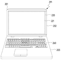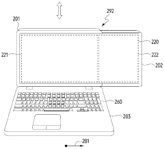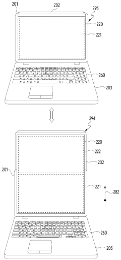 Technical Solution: Samsung has pioneered flexible microdisplay technology through its AMOLED (Active-Matrix Organic Light-Emitting Diode) displays. Their flexible display solution incorporates Ultra-Thin Glass (UTG) technology that enables displays to bend while maintaining durability. Samsung's approach focuses on creating displays with high pixel density (over 400ppi) while maintaining flexibility, allowing for innovative form factors like foldable smartphones. Their displays feature Dynamic AMOLED technology with HDR10+ certification, providing enhanced contrast ratios and color accuracy even when the display is bent or folded. Samsung has also developed advanced touch sensitivity algorithms that maintain consistent touch response across curved surfaces, addressing a common user experience challenge with flexible displays. Recent implementations include reducing the folding crease visibility by 60% compared to earlier generations through optimized display layers and folding mechanisms.