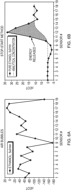 - The method involves a Stop-Start process using a co-flow reactor microchannel with Nano Hole Array (NHA) sensors, where a first fluid is flowed, measured, and then stopped and evacuated to prevent bubble formation, allowing a second fluid to flow for reaction measurement, calculating calorimetry based on extraordinary optical transmission (EOT) differences.