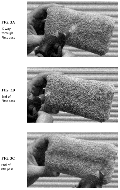Maintaining the acoustic properties of superhydrophobic coatings under various environmental conditions presents significant challenges. Mechanical abrasion, high-pressure water exposure, and chemical contamination can degrade both the hydrophobicity and acoustic performance over time. Advanced formulations incorporate self-healing mechanisms and reinforcing components to extend service life. Testing protocols have been developed to evaluate the combined acoustic and hydrophobic performance under simulated environmental conditions. Some coatings utilize fluorine-free chemistry to achieve environmentally sustainable solutions while maintaining the desired acoustic properties.Expand Specific Solutions