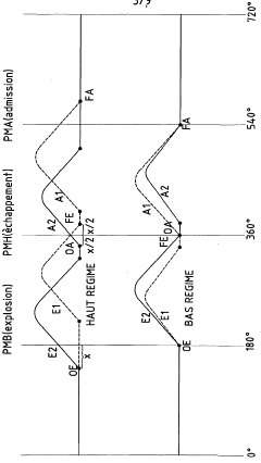 - A variable valve timing device utilizing hydraulic transmission means to actuate valves with movements from separate camshafts, allowing for flexible adjustment of valve opening and closing moments, angular durations, and lift, while automatically canceling operating clearance to reduce noise and wear, using phase shifters sensitive to engine parameters like speed and load.