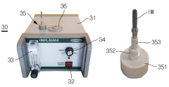 - A plasma treatment apparatus that generates stable plasma by discharging a low-pressure atmosphere without using a separate process gas, utilizing a sealed space with pressure control and electrode structures to improve surface treatment efficiency and safety, while reducing the generation of by-products and maintaining sterility.