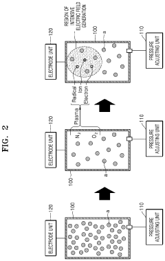 Beyond standard applications, plasma treatment has been developed for specialized uses including atmospheric pressure plasma processing, selective area treatment, and integration with other manufacturing processes. These techniques may employ unique gas mixtures, pulsed plasma generation, or specialized delivery systems to achieve specific treatment outcomes. Applications range from nanomaterial synthesis to medical device sterilization, with each requiring tailored plasma parameters and treatment protocols to optimize results.Expand Specific Solutions