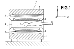 - Incorporating an additional envelope made of a conductive material with specific electrical resistivity and characteristic frequency, such as lead, between the solenoid gradient windings and the vacuum enclosure to reduce eddy currents and vibrations, thereby minimizing power dissipation and noise.