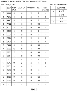 - An apparatus and method that load essential and additional indexes into memory based on available memory capacity, using a seed table and multi-location table to quickly check for exact matches in the reference genome, allowing for partial loading of indexes and prioritizing the essential parts to enhance alignment speed without requiring special hardware.
