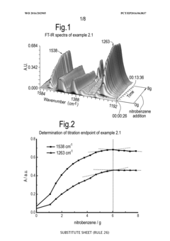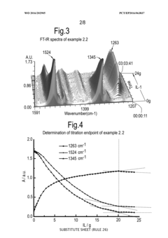 Infrared (IR) spectroscopy methods, including FTIR and ATR-IR, are employed for in situ identification of reaction intermediates. These techniques detect the vibrational modes of molecules, providing structural information about intermediates formed during chemical processes. The ability to perform measurements in real-time allows for monitoring reaction kinetics and mechanism elucidation by tracking the appearance and disappearance of characteristic absorption bands associated with intermediate species.Expand Specific Solutions03 NMR spectroscopy for in situ intermediate characterization