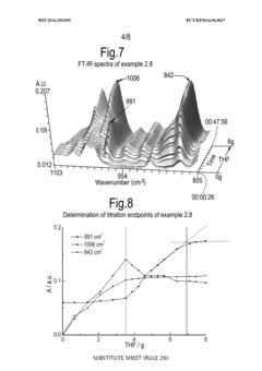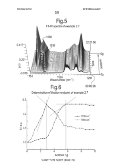 - Infrared spectroscopy methods for intermediate analysis: Infrared spectroscopy techniques, including FTIR (Fourier Transform Infrared) spectroscopy, are utilized for the identification and characterization of reaction intermediates in situ. These methods detect the vibrational modes of molecules, providing valuable information about functional groups and molecular structures of intermediates. The ability to perform measurements in real-time allows researchers to monitor reaction progress and identify transient species that may play crucial roles in reaction mechanisms.