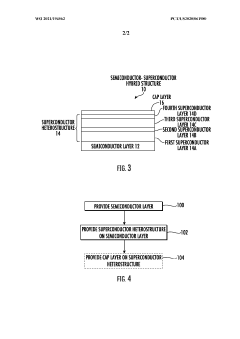 - A semiconductor-superconductor hybrid structure is created using a superconductor heterostructure with multiple layers of different superconducting materials, where the first layer is chosen for structural and electrical compatibility with the semiconductor, and the second layer is a distinct superconducting material, enhancing both superconducting and physical properties compared to conventional homostructures.