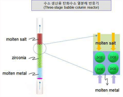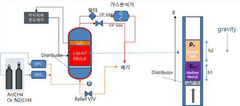 - Molten metal reactor technology for methane decomposition: Molten metal reactors represent an innovative approach to methane pyrolysis, using liquid metals (such as tin, bismuth, lead, or their alloys) as both heat transfer medium and catalyst. The design typically features a vessel containing the molten metal through which methane is bubbled. This configuration offers advantages including excellent heat transfer, continuous carbon separation as solid carbon floats to the surface, and prevention of carbon deposition on reactor walls. Key design considerations include materials of construction to withstand high temperatures and corrosive molten metals, gas injection systems, and mechanisms for continuous carbon removal.